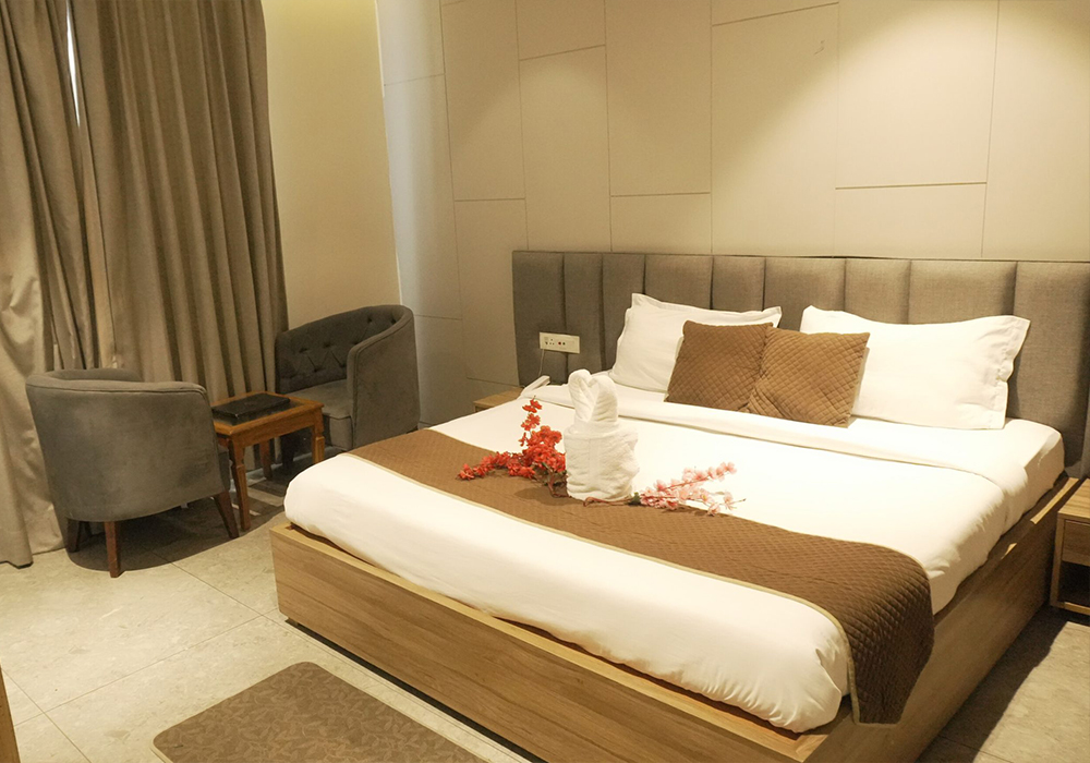 Step into luxury with our K9 Grand room, designed to provide a perfect balance of style and comfort. Featuring elegant interiors, premium furnishings, and ample space, this room offers a truly relaxing experience. Enjoy a restful night on plush bedding, complemented by modern amenities for your convenience. The serene ambiance makes it ideal for families, couples, or business travelers seeking comfort. Refresh yourself in the sleek bathroom and indulge in a stay that feels truly special.